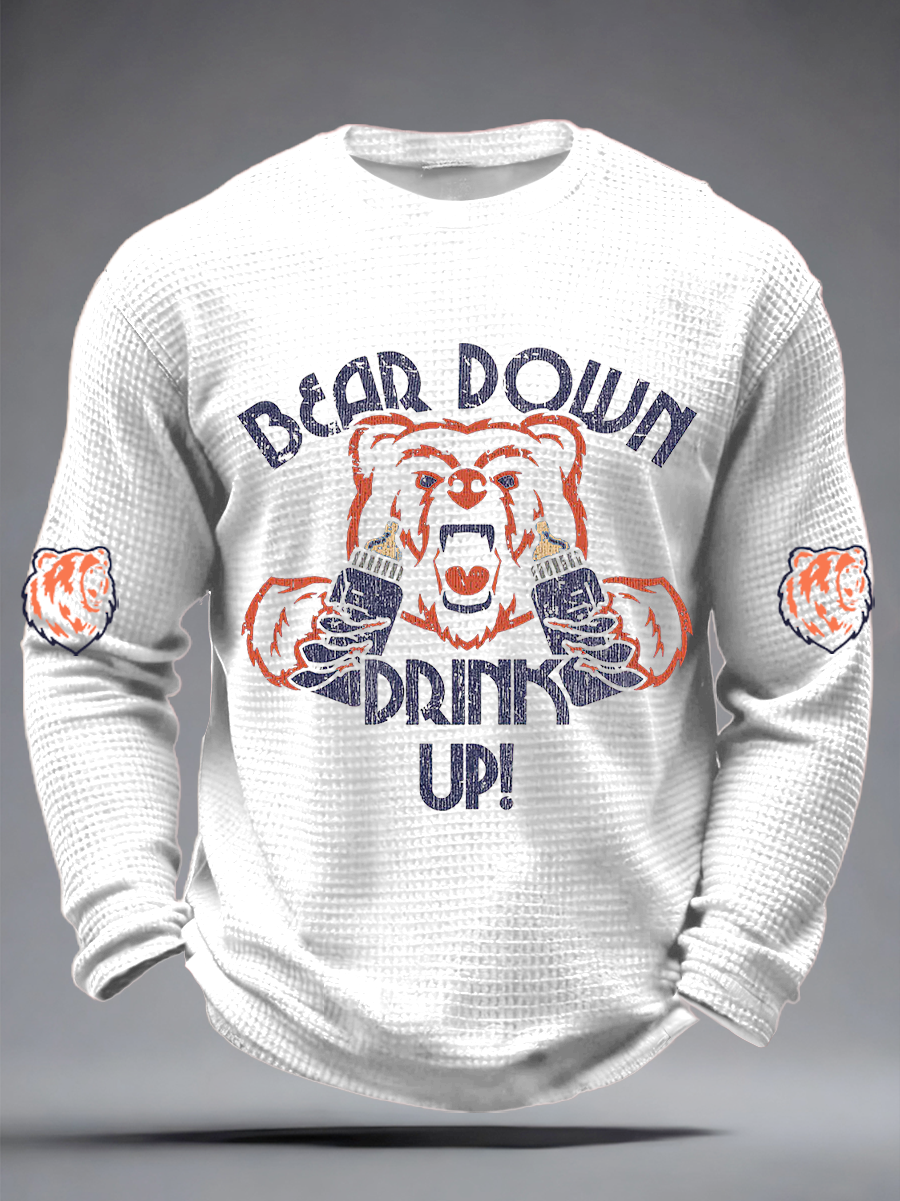 Men's Drink Up printed Football Fans Gameday Casual Waffle Long Sleeve T-Shirt