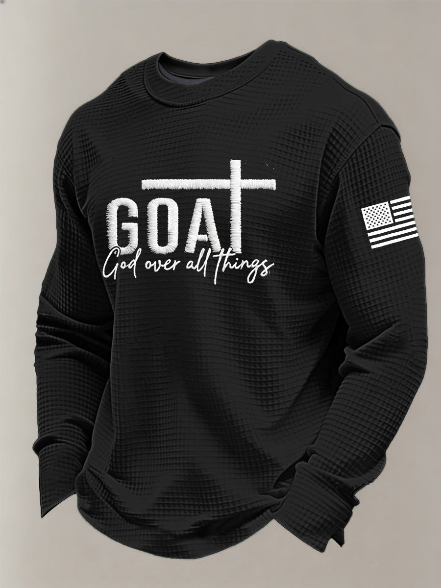 Men's Vintage God Over All Things Cross Waffle Long Sleeve T-Shirt