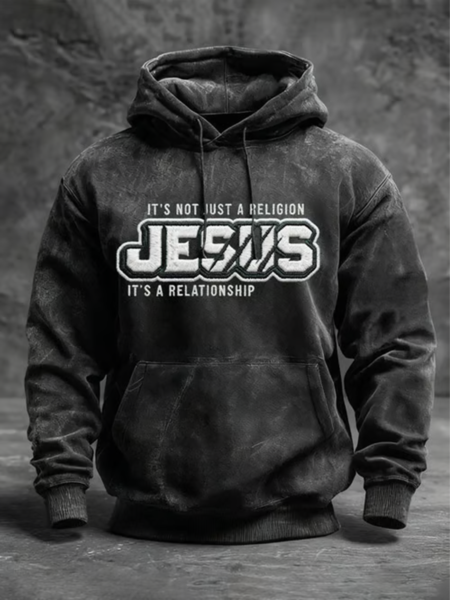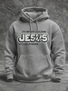 Men's JESUS Print Oversized Drop-Shoulder Hoodie with Pockets