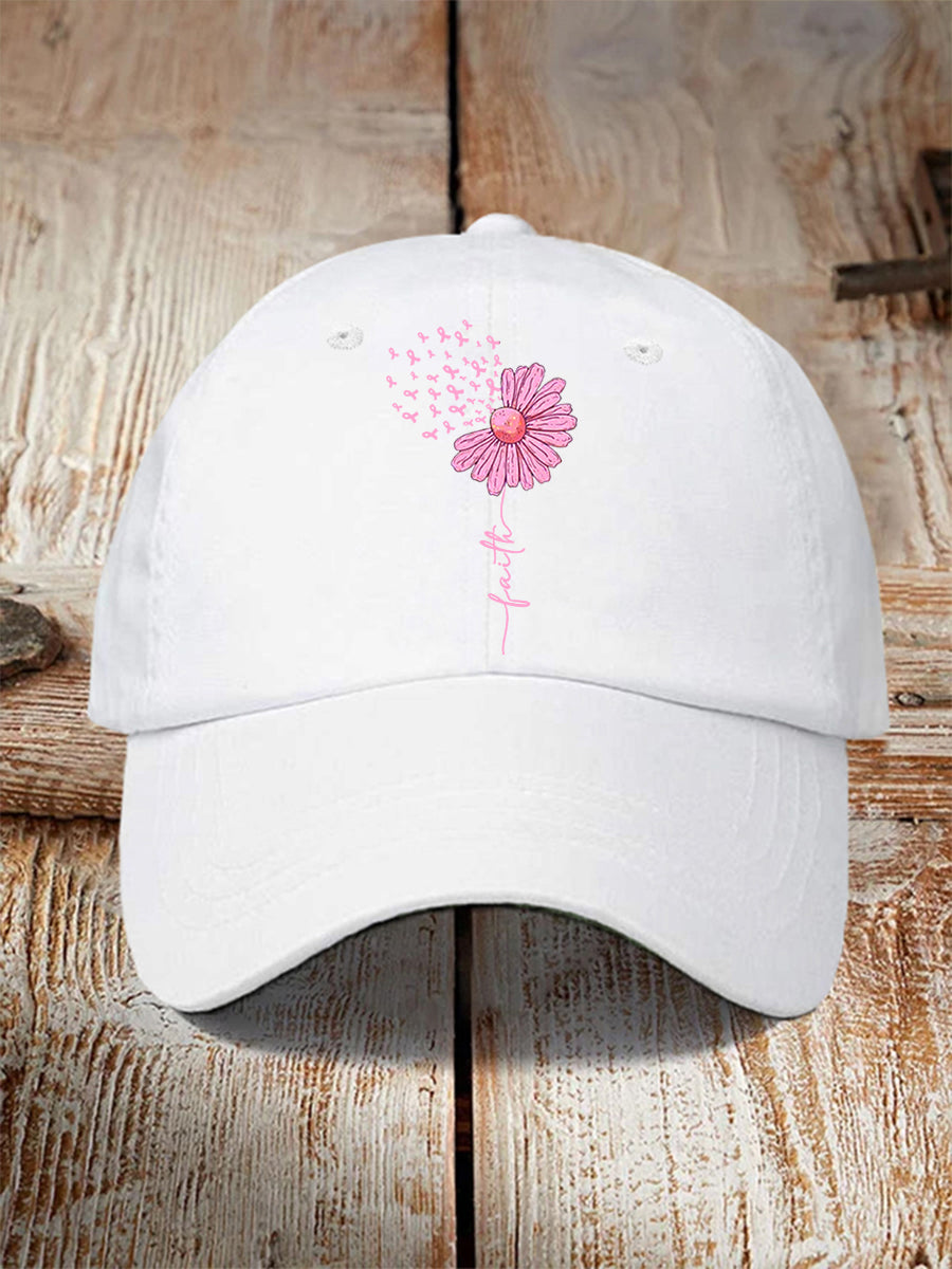 Unisex Pink Ribbon Sunflower Faith Breast Cancer Awareness Support Hat