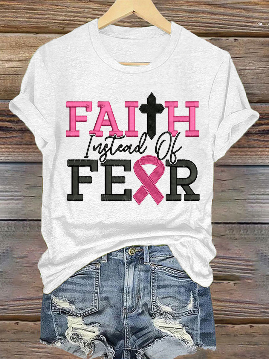 Women's Breast Cancer Awareness Faith Instead of Fear Short Sleeve T-Shirt