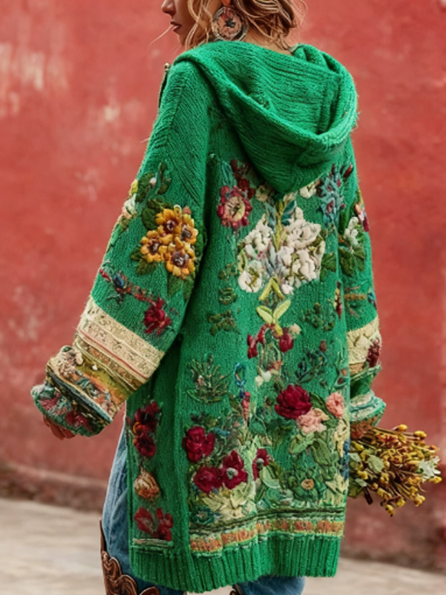 Women's Breast Cancer Awareness Floral Button Cardigan Hooded Sweater
