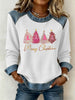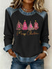 Women's Breast Cancer Awareness Merry Christmas Christmas Tree Print Casual Top