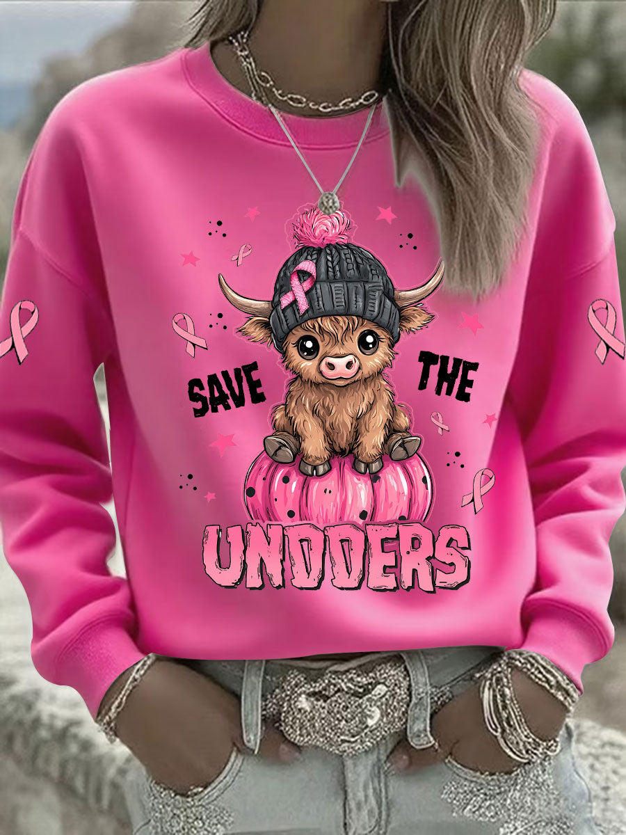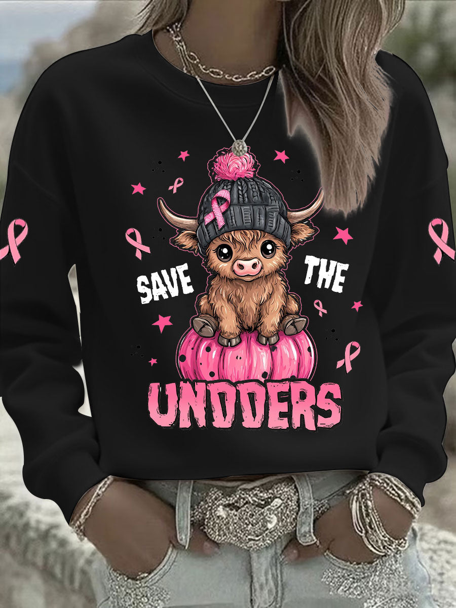 Women's Breast Cancer Awareness Pink Ribbon Print Casual Sweatshirt