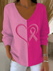 Women's Breast Cancer Awareness Pink Ribbon Print Casual Top