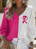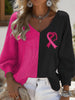 Women's Breast Cancer Awareness Print Casual Long Sleeve Shirt