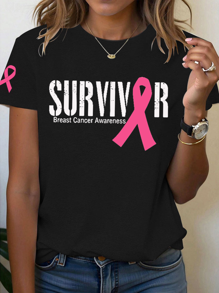 Women's Breast Cancer Awareness Survivor Print T-Shirt