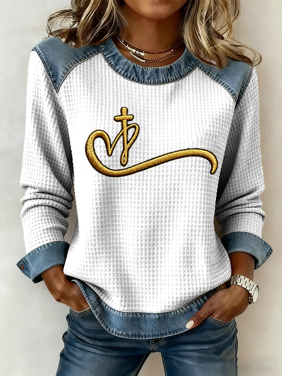 Women's Faith Waffle Print Casual Top