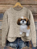 Women's Fuzzy Shih Tzu Dog Felt Cozy Knit Sweater