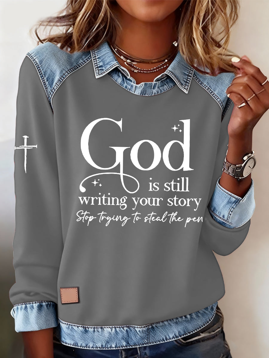 Women's God Is Still Writing Your Story Cross Sweatshirt
