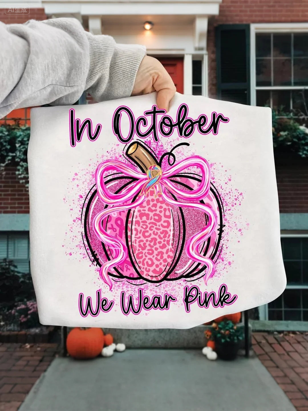 Women's In October We Wear Pink Breast Cancer Awareness Sweatshirt