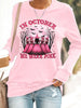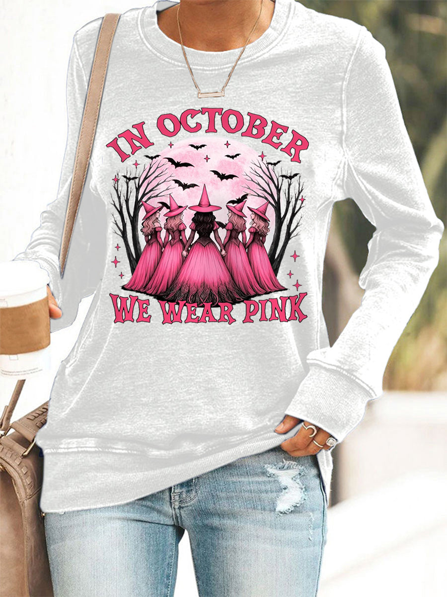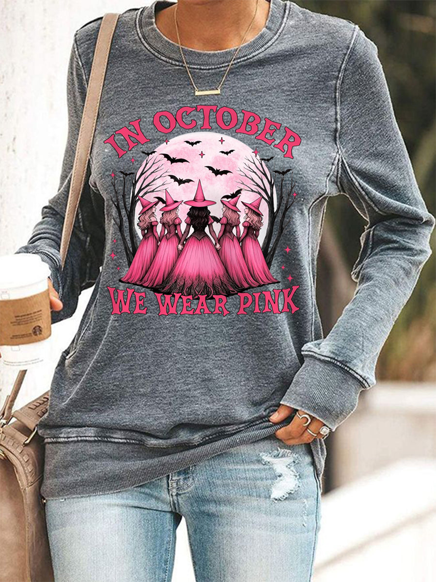 Women's In October We Wear Pink,Pink Halloween Witch Print Breast Cancer Awareness Sweatshirt