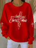 Women's Merry Christmas Cross Ribbed Round-Neck Sweatshirt