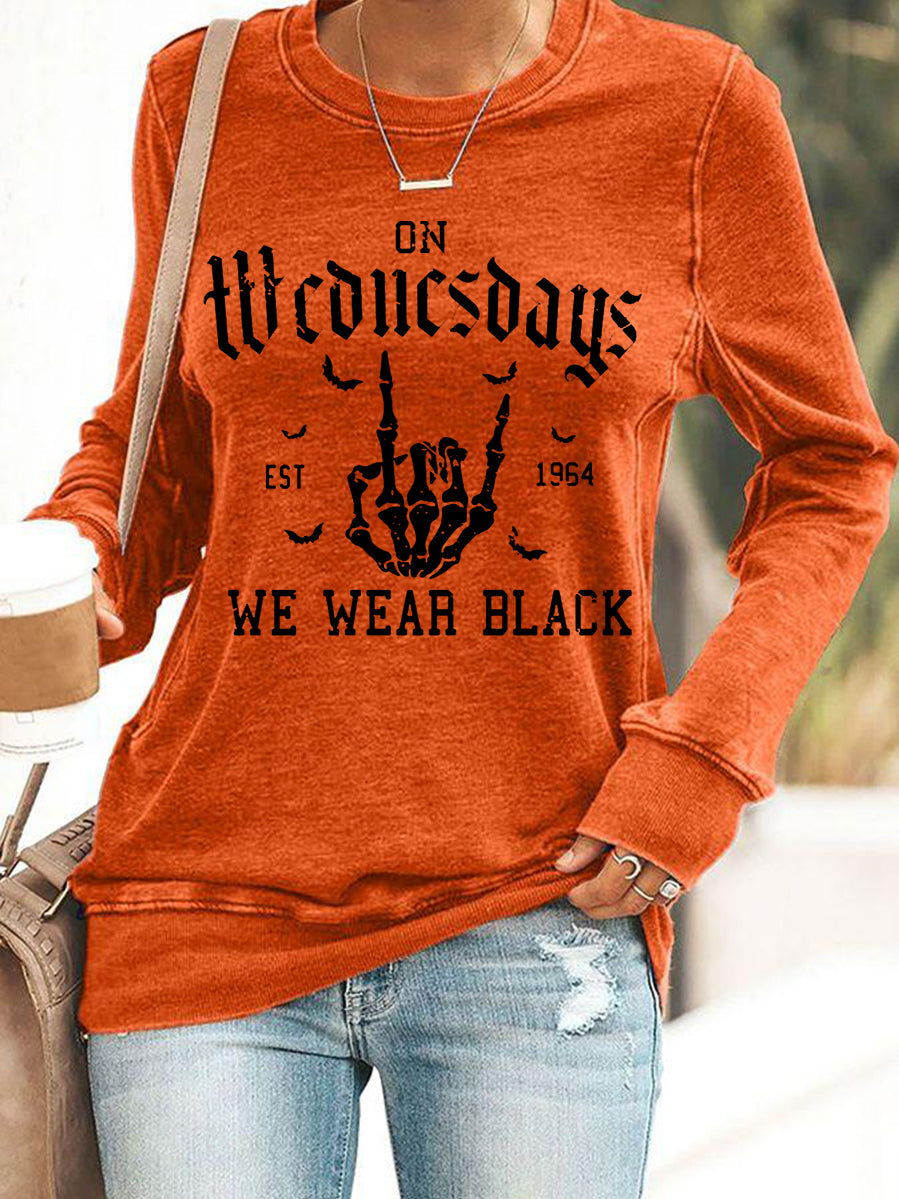 Women's On Wednesdays We Wear Black Halloween Horror Party Casual Sweatshirt