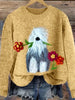 Women's Sheep Dog with Flowers Cozy Knit Sweater