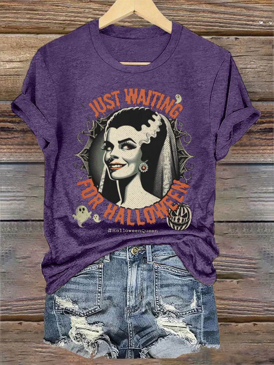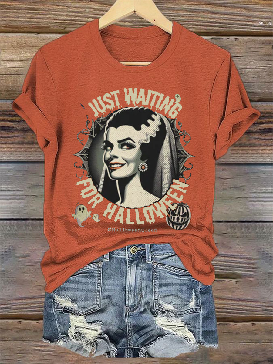 Women's Vintage Just Waiting For Halloween Casual Tee