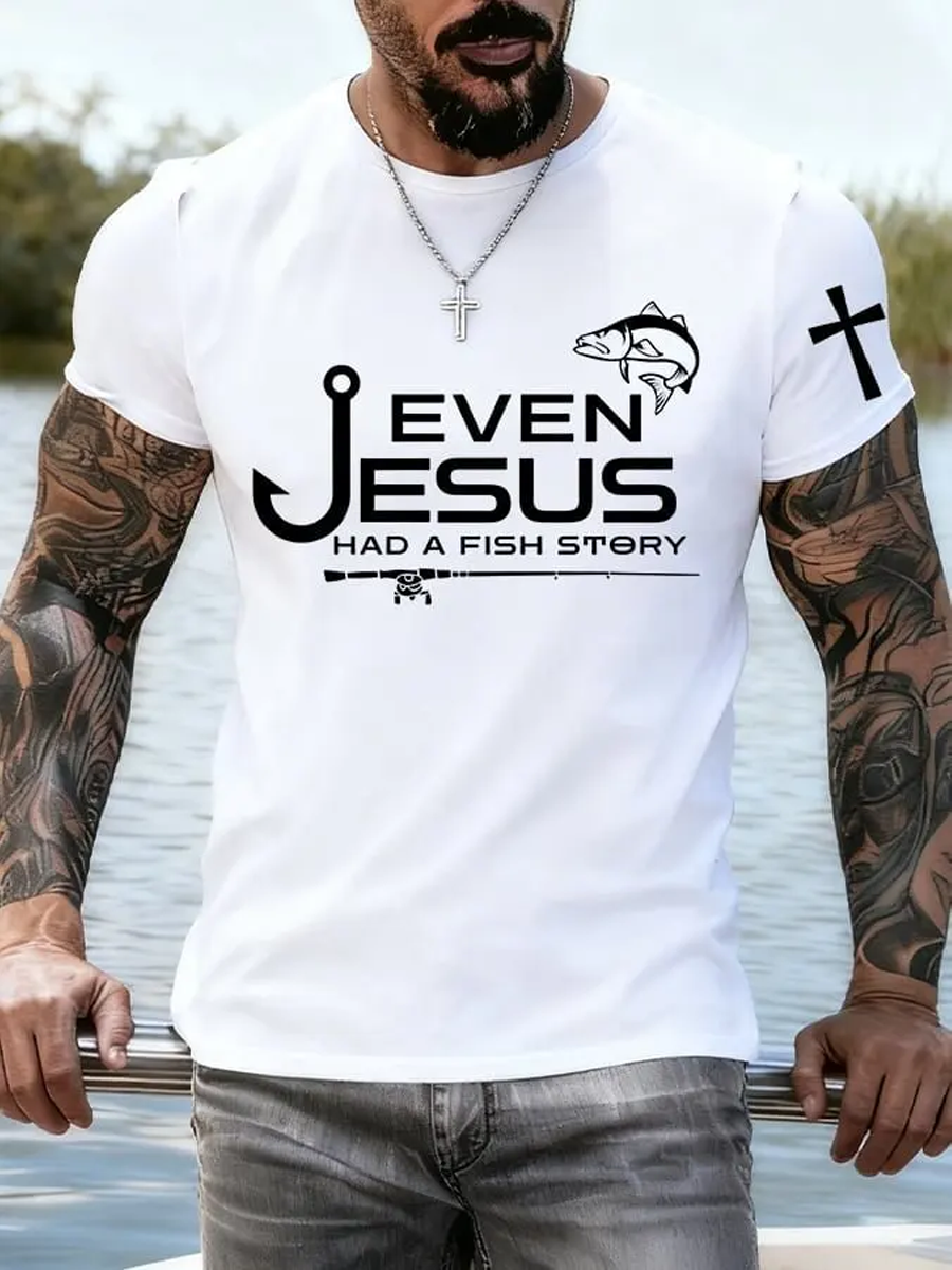 Men's esus Also Told The Story Of The Fish imitation cotton short-sleeved T-shirt