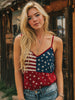 Women's American Flag Inspired Print Vintage V-Neck Tank Top