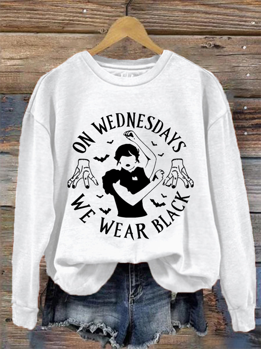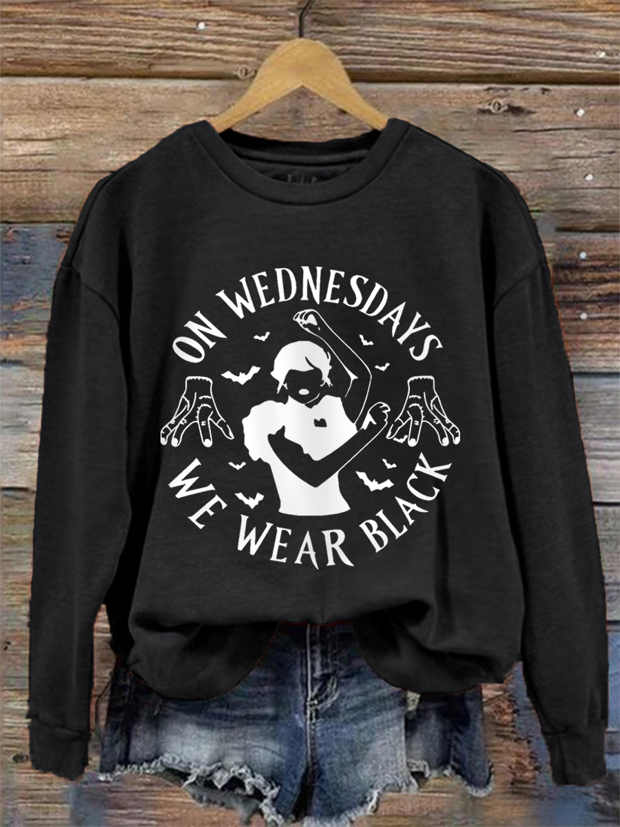 Women's On Wednesdays We Wear Black Halloween Horror Party Casual Sweatshirt