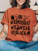 Women's On Wednesdays We Wear Black Halloween Horror Party Casual Tee