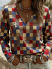 Women's Plaid Patchwork Cross V-Neck T-Shirt