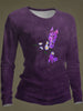 Women's Purple Art Print Casual Long-Sleeve T-Shirt