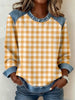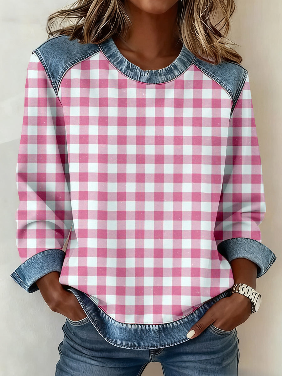 Women's Simple Plaid Pattern Denim Patchwork Sweatshirt