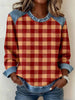 Women's Vintage Plaid Pattern Denim Patchwork Sweatshirt