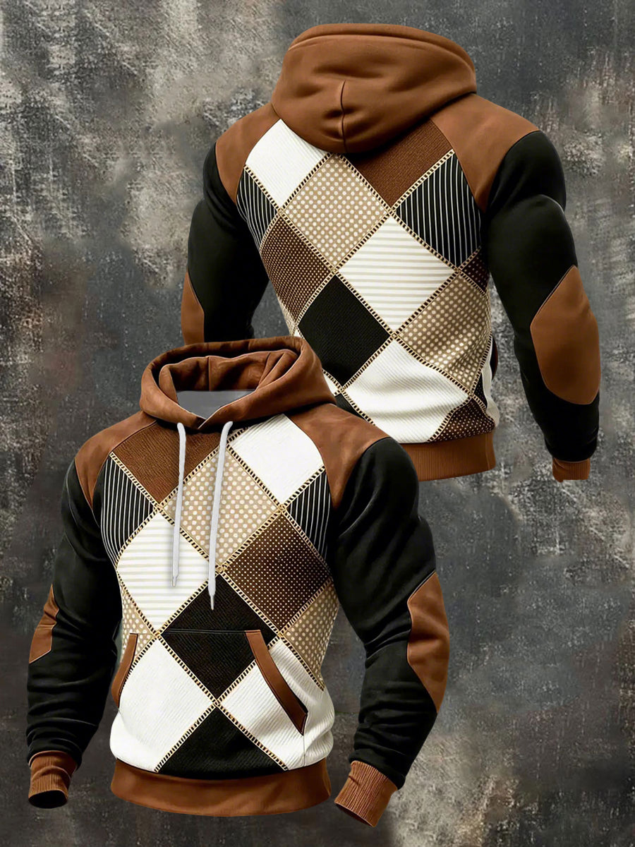Men's Geometric Patterns Print Hoodie with Pocket