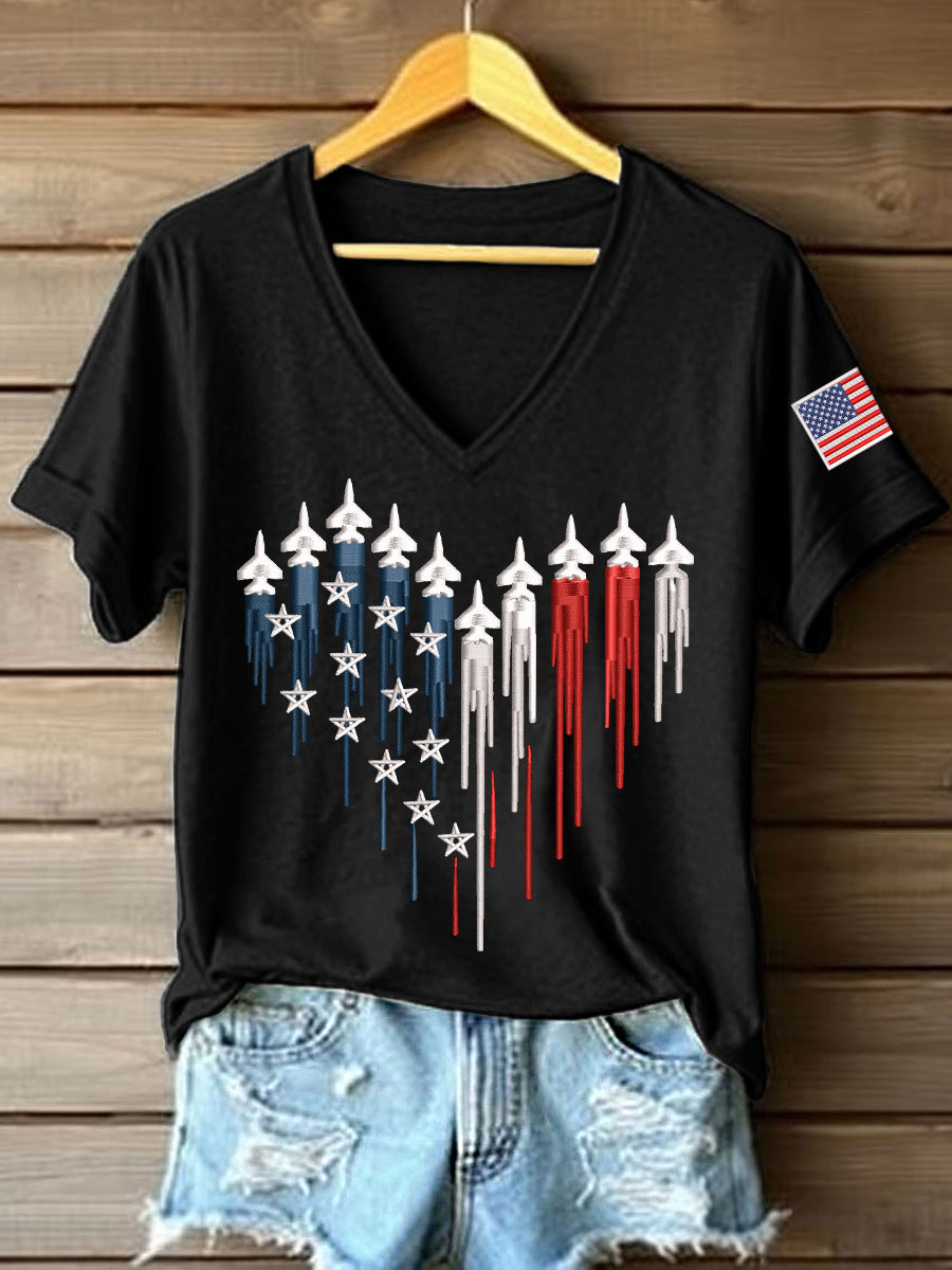 Women's American Heart Print V-Neck T-Shirt