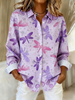 Women's Casual Purple Artistic Floral Dragonfly Thick Shirt