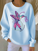 Women's Casual Retro Purple Hummingbird Alzheimer's Textured Sweatshirt
