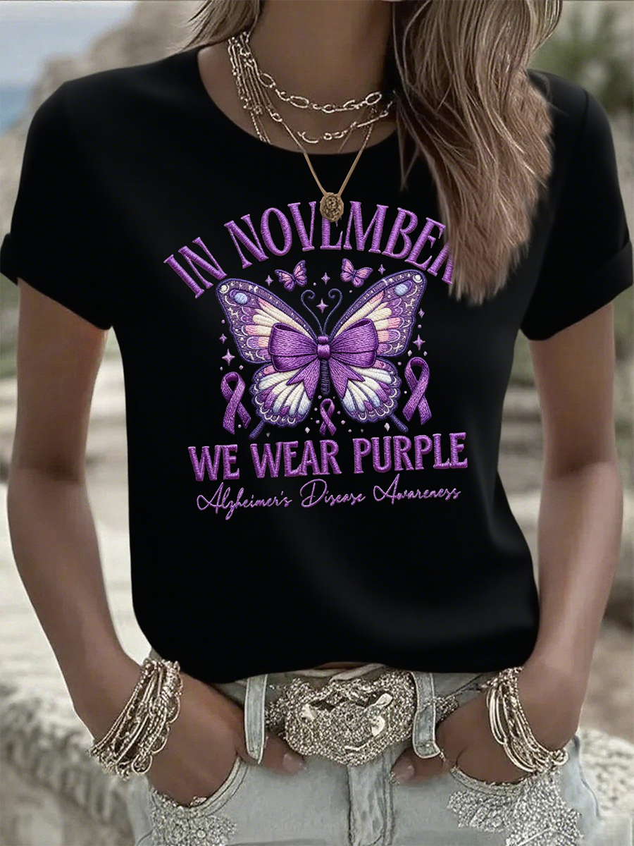 Women's Casual Retro Style: We're Wearing Purple T-Shirts in November
