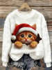 Women's Cute Christmas Cat Art Print Casual Flannel Sweatshirt