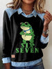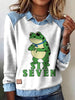 Women's Funny 67 Six Seven Portland Frog Printed Casual Long Sleeve Top