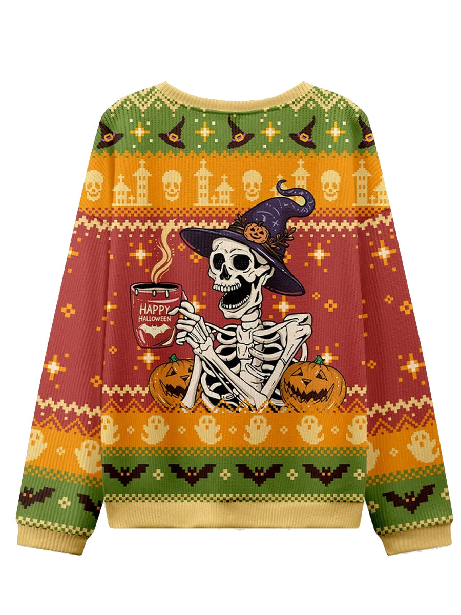 Women's Funny Halloween Skeleton Print Ugly Sweatshirt