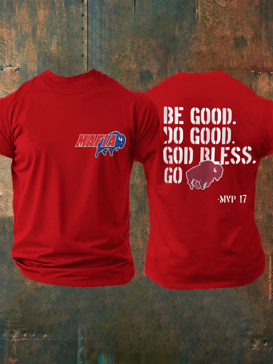 Men's Be Good Do Good God Bless Go Bills Football Fans Gameday Casual Tee