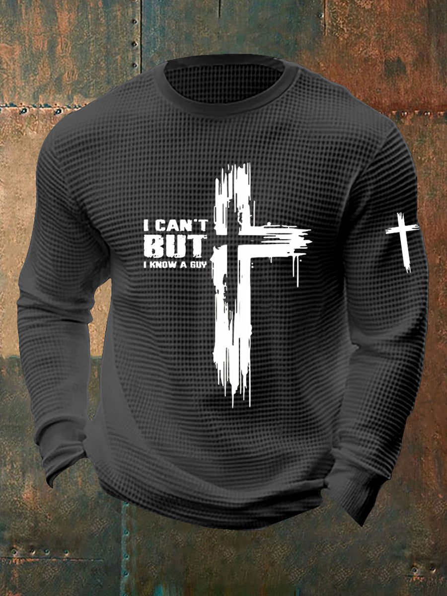 Men's Christian I Can't... But I Know A Guy. Printed Waffle Long Sleeve T-Shirt