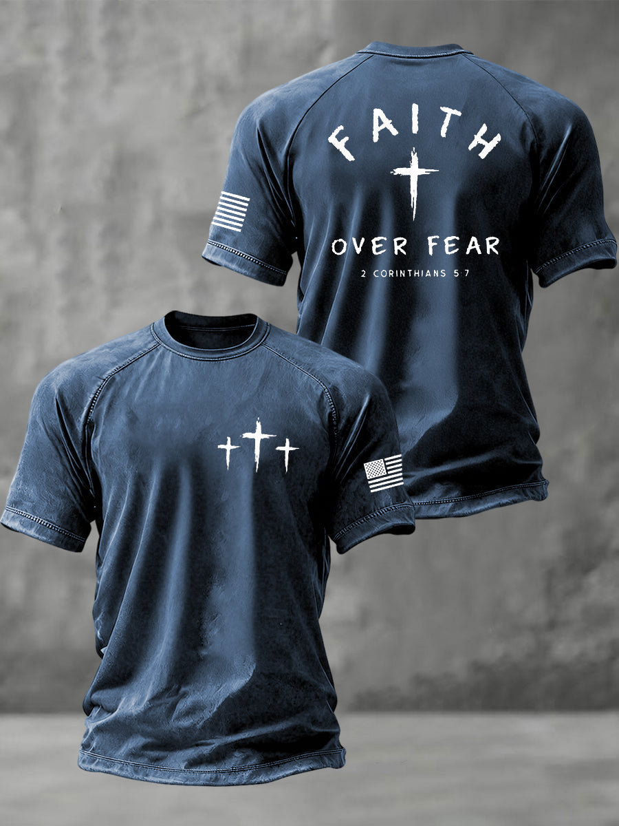 Men's Faith Over Fear Christian Cross Short Sleeve t-shirt