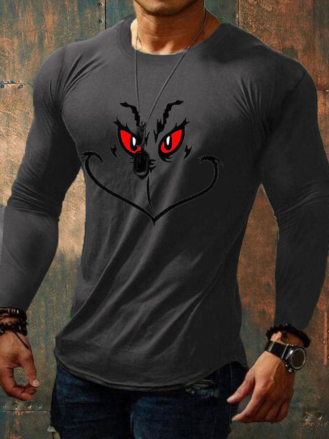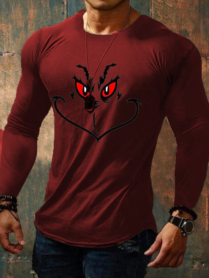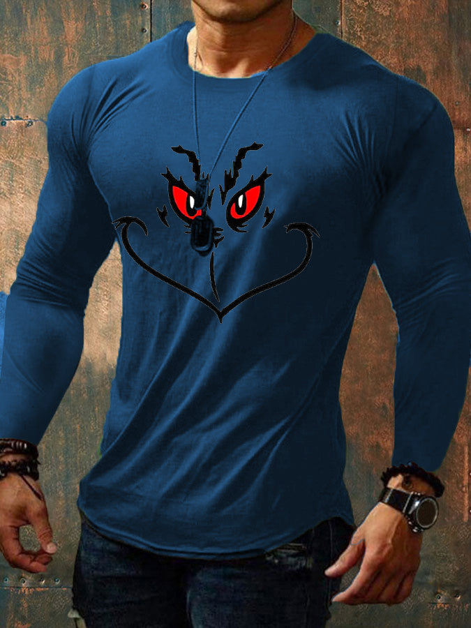 Men's Funny Classic Christmas Character Print Casual Long Sleeve Top