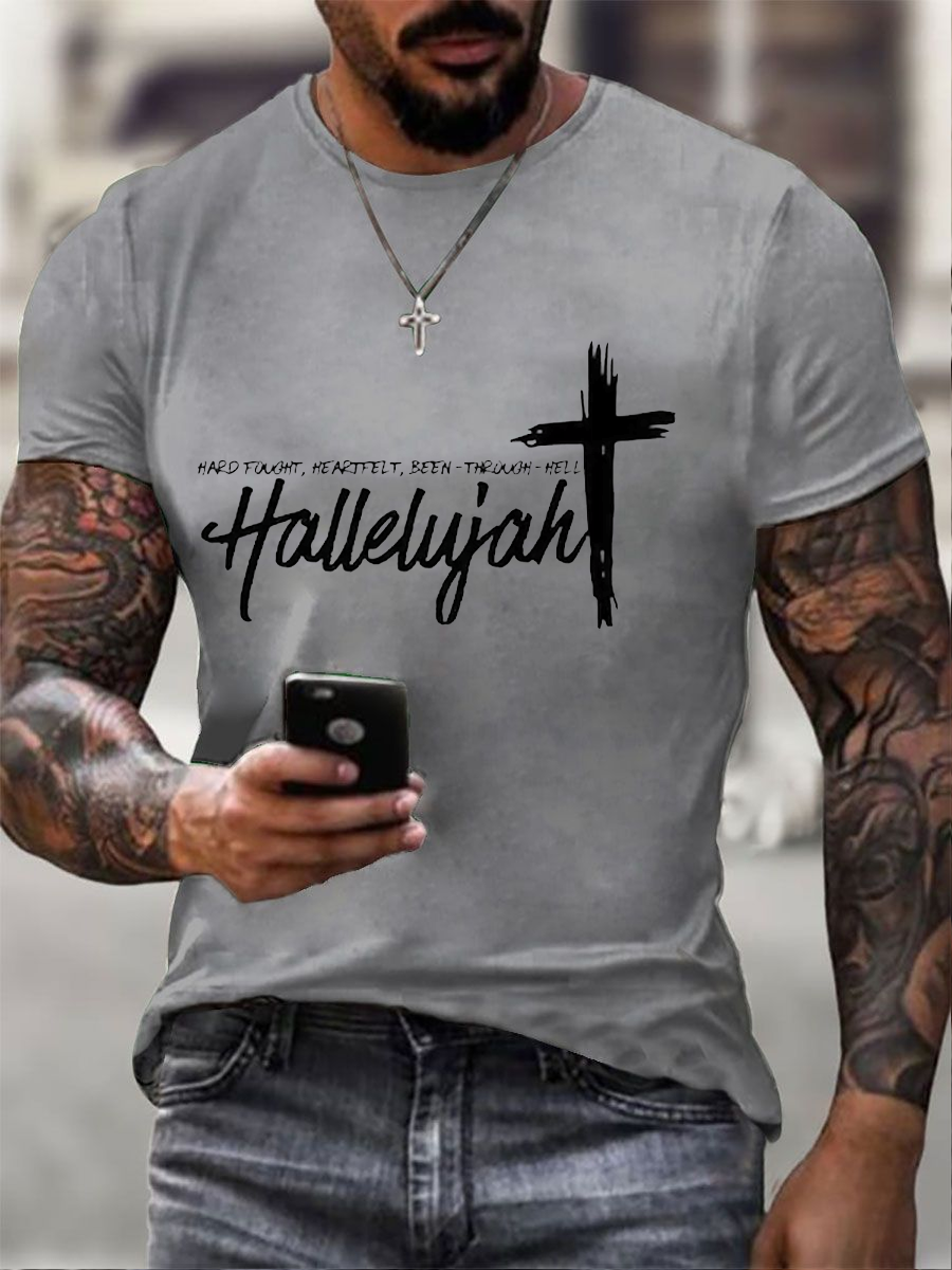 Men's Hard Fought, Heartfelt, Been Through Hell Hallelujah Printed Round Neck T-Shirt