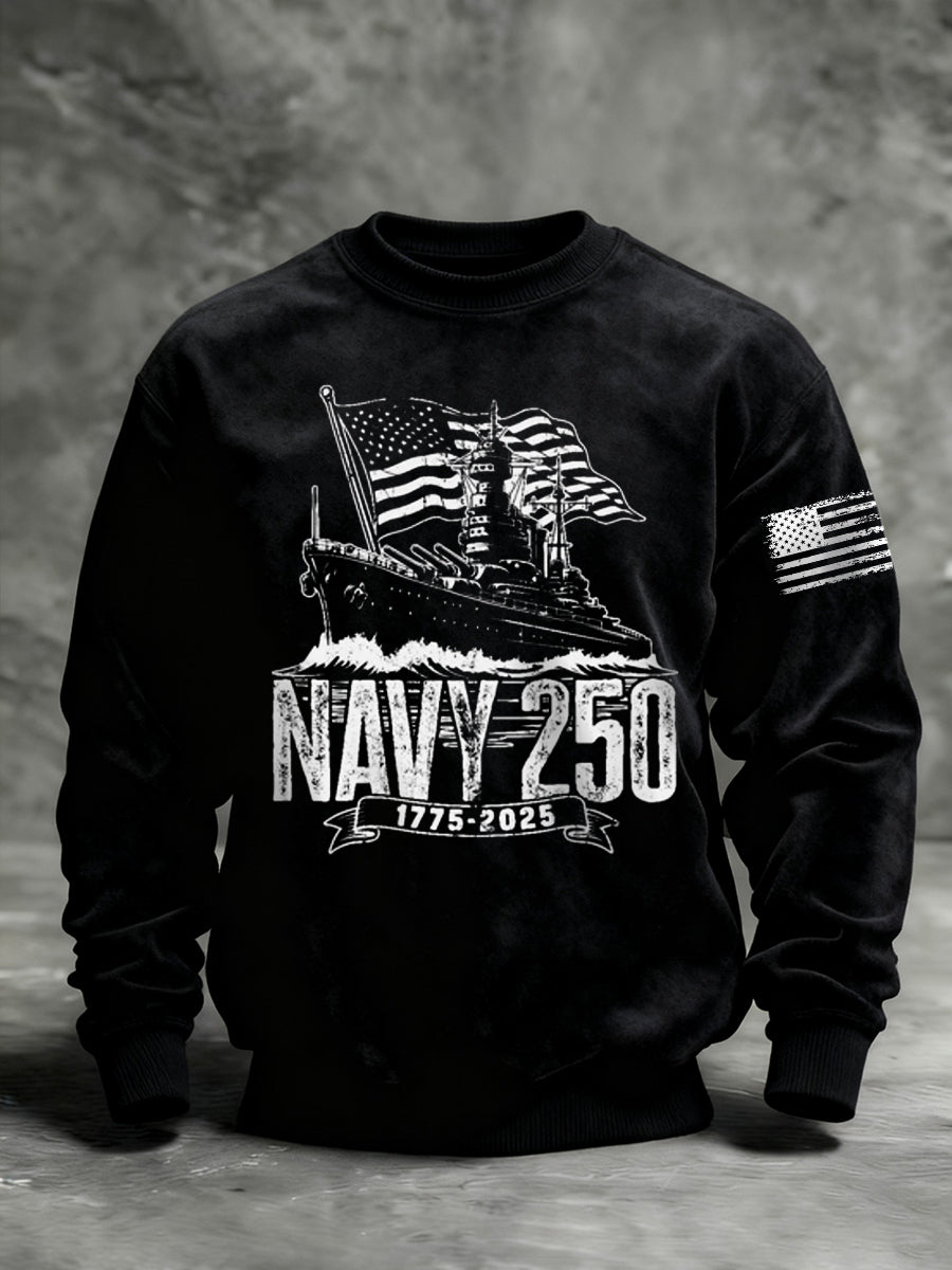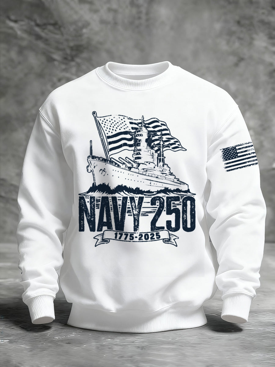 Men's Navy 250th Anniversary Printed Crew Neck Sweatshirt