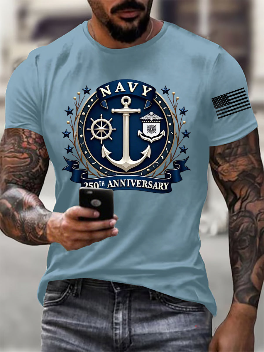 Men's Navy 250th Anniversary Printed short-sleeved T-shirt