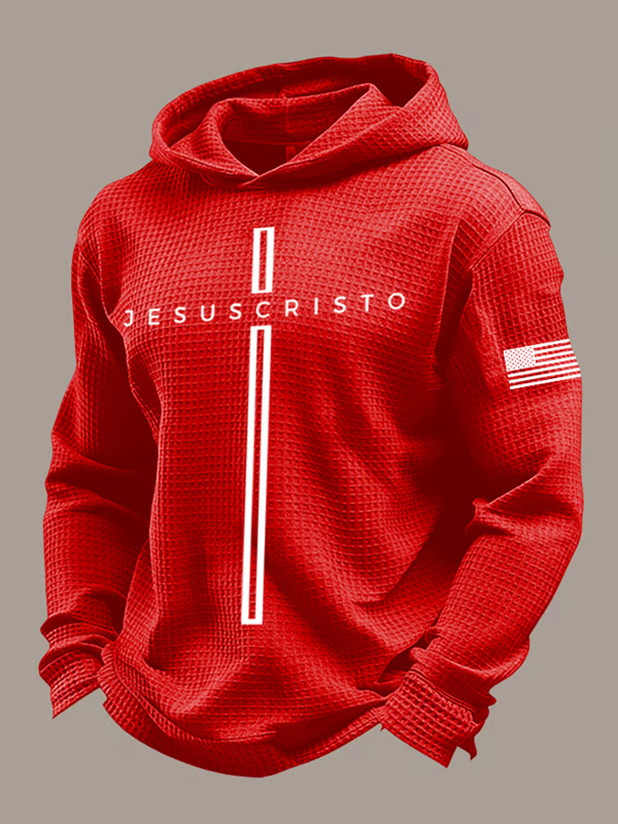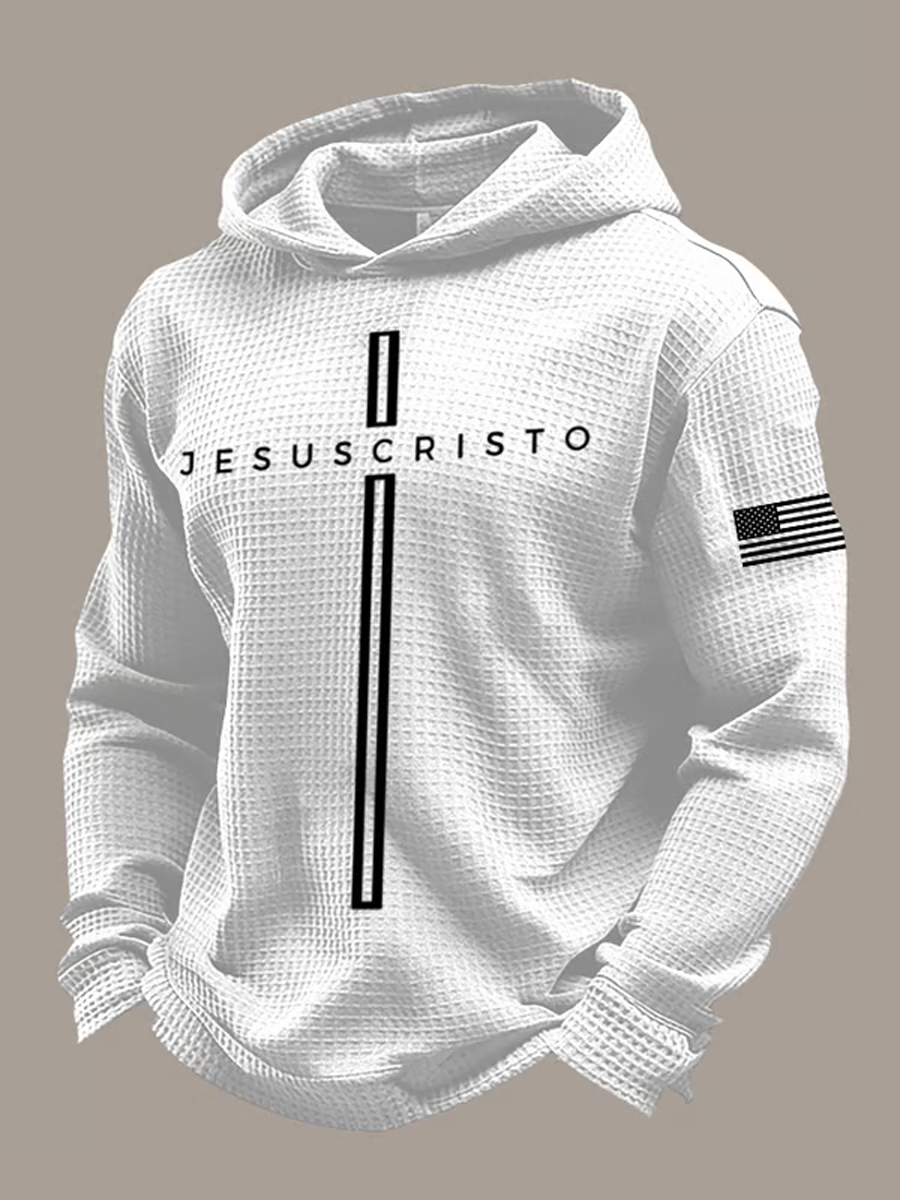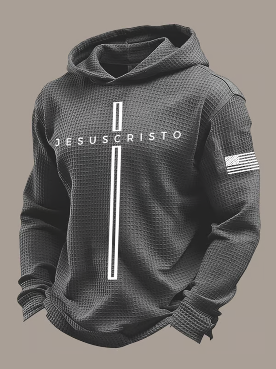 Men's Retro Faith Printed Waffle Long Sleeve Top