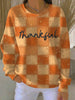 Women's Autumn Thanksgiving Plaid Ribbed Round-Neck Sweatshirt