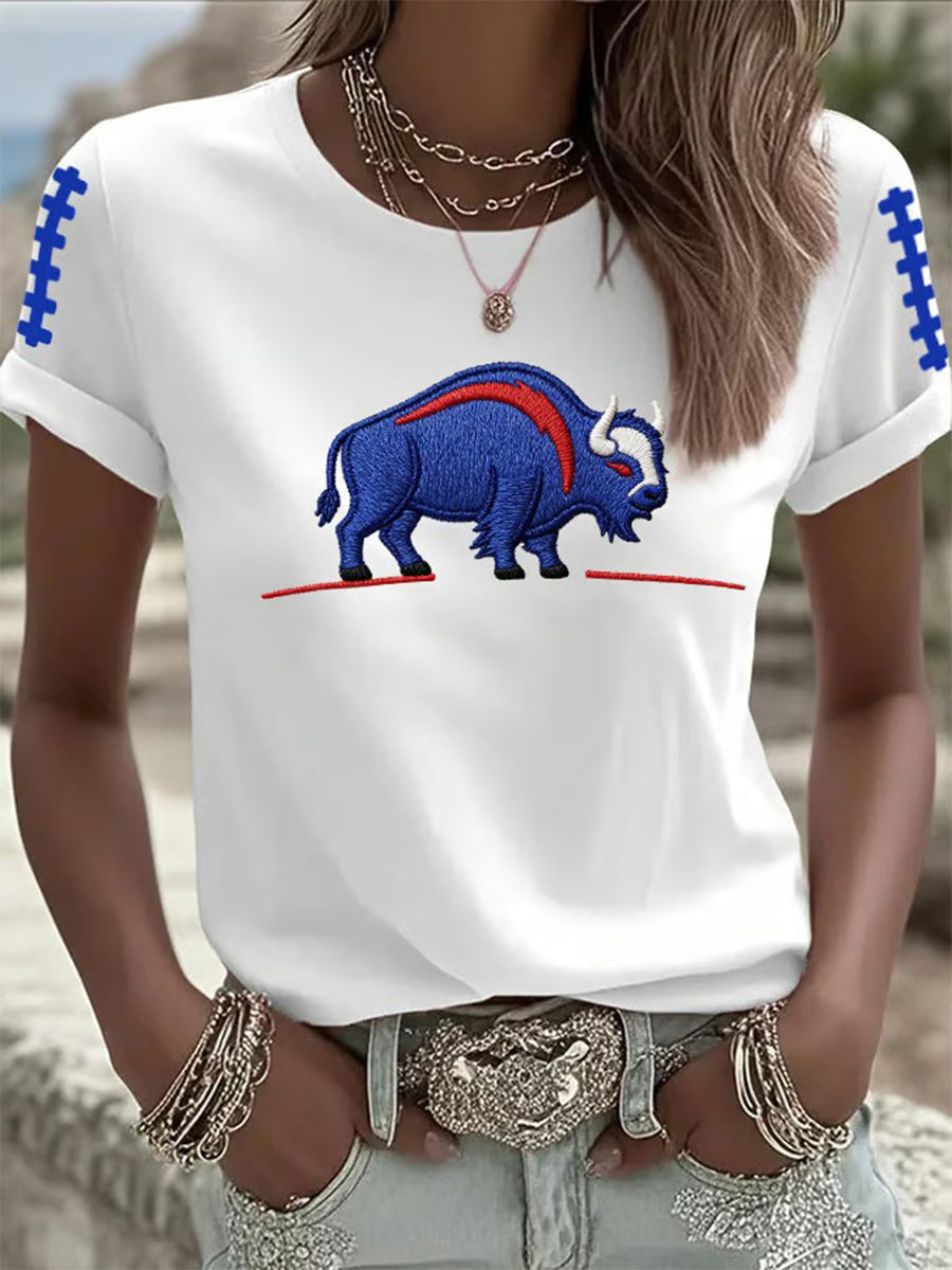 Women's Buffalo Print Football Fans Gameday Casual Tee