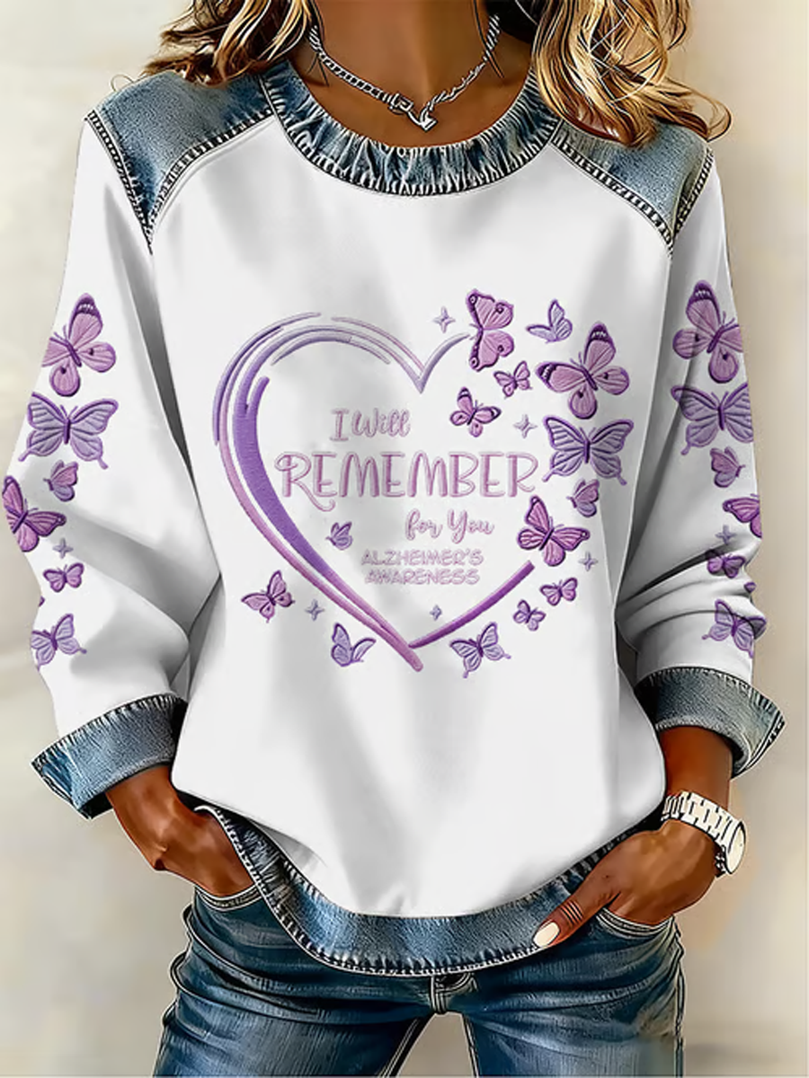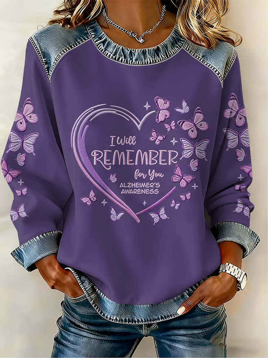 Women'S Casual Alzheimer'S "I Will Remember For You" Printed Sweatshirt