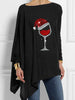 Women's Christmas Red Wine Glass Print Casual Irregular Top