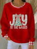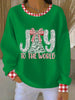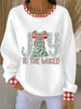 Women's Coquette Jesus Christmas Joy To The World Ribbed Round-Neck Sweatshirt