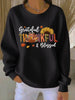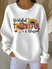 Women's Retro Thanksgiving GOBBLE Print Ribbed Round-Neck Sweatshirt